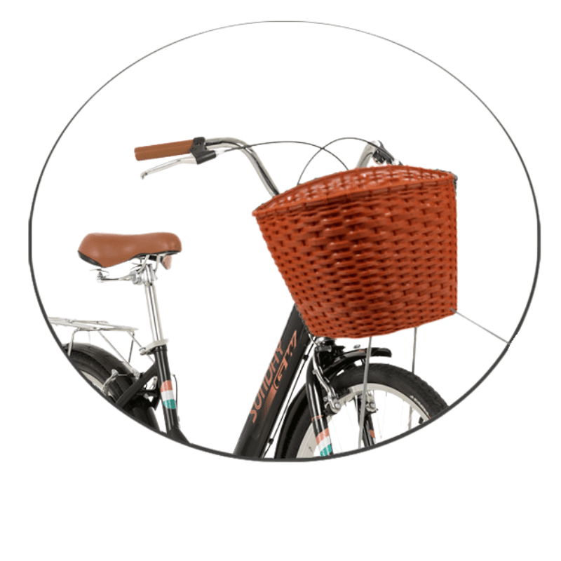 Esta bicicleta combina un marco de estilo retro, un sillín amplio y ergonómico, y una canasta delantera funcional (negra o café) que le aporta un toque clásico y práctico.